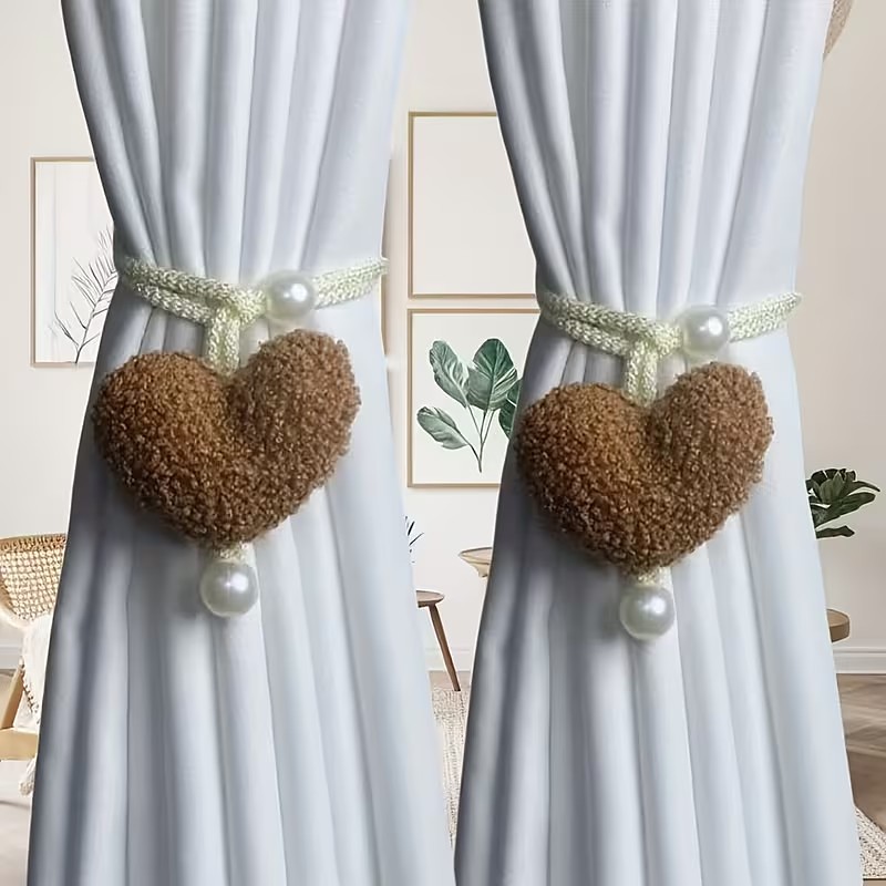 1/2PCS 3D Plush Heart-Shaped Beaded Curtain Tieback Decoration Mosquito Net Rope Buckle