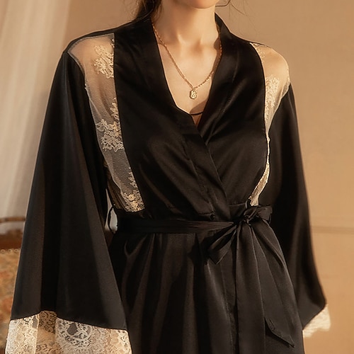 Per donna Abbigliamento da Casa Camicia da Notte Moda Casual Colore Puro Pigiama in raso di seta Pizzo Patchwork Vestiti Casa Vacanza Manica Lunga Scollo a V Nero Bianco Verde chiaro Rosa Viola