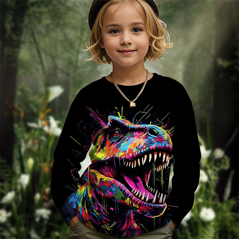 Boys 3D Dragon Tee Shirts Long Sleeve 3D Print Spring Fall Sports Fashion Streetwear Kids 3-12 Years Crew Neck Outdoor Casual Daily Regular Fit
