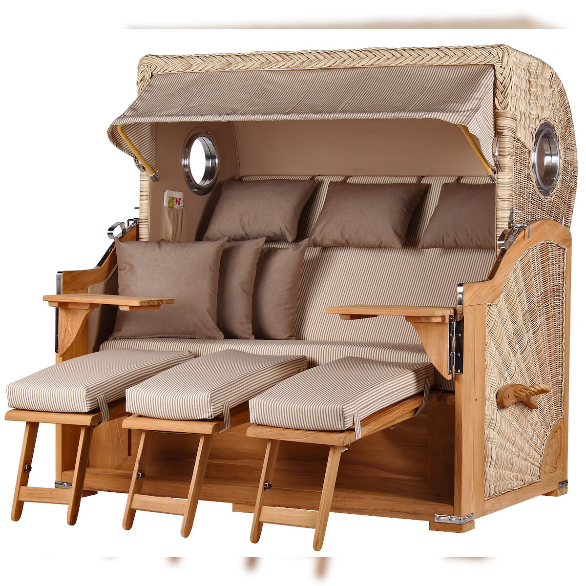 Mr. Deko Strandkorb - bene living - Königssee Dreisitzer Teak Bullauge - PE shell - Modell 510 - inkl. Liftersystem