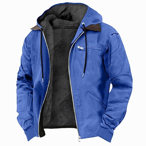 Per uomo Felpa con cappuccio Felpa con cappuccio a zip intera Sherpa Linend Verde militare Blu Marrone Grigio Con Cappuccio Semplice Tasca Sport Outdoor Quotidiano Ferie Poliestere Vintage