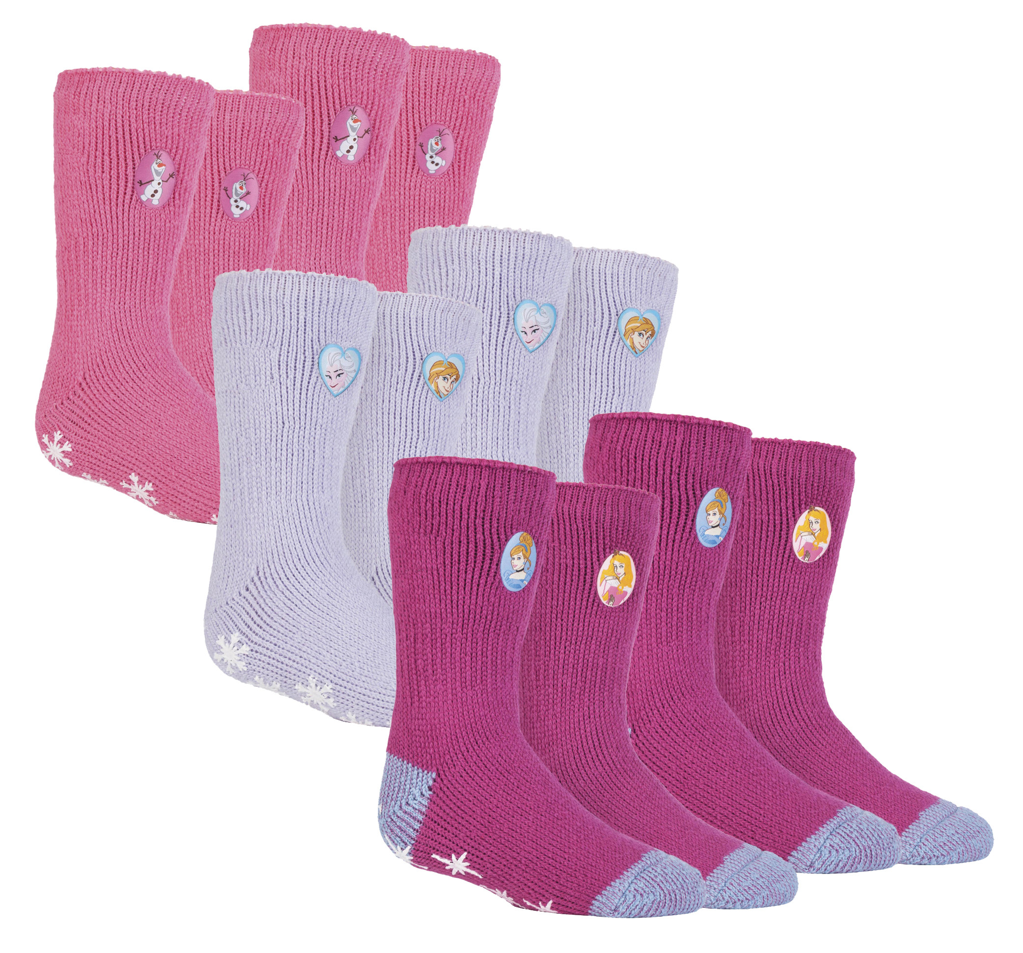 Heat Holders - 6 Pack Girls Non Slip Character Socks | Winter Thermal Cute Frozen Olaf Princess - - Multicolour - Size UK 12.5-3 Kids