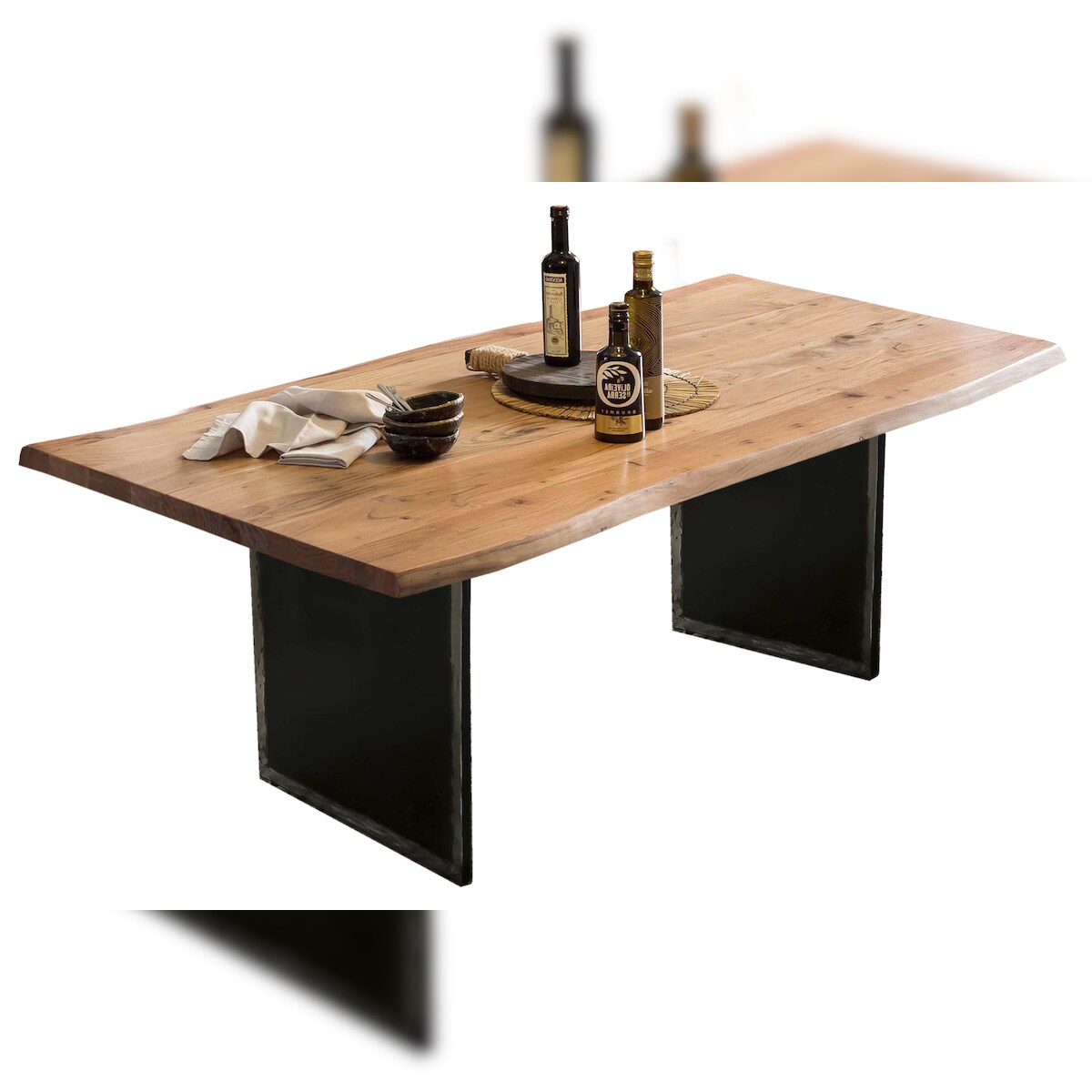 SIT Möbel Baumkante-Tisch | 36 mm Akazie-Platte natur | Metallgestell schwarz | B 200 x T 100 x H 75,6 cm | 16091-11 | Serie TOPS & TABLES