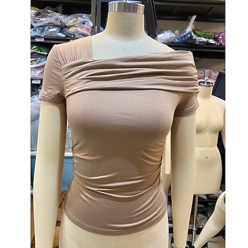 Women's Summer Tops Blouse Dressy Tops Sequin Tops Solid Color Plain Elegant Vintage Ladies Short Sleeve Off Shoulder Regular Tops Daily Work Going out Ruched Sequins Patchwork Blue Black White Red
