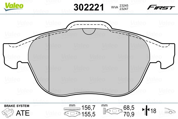 Jarrupalasarja, levyjarru, Etuakseli Valeo 302221 - renault - OE 410600032R, 410607613R, 7701206599
