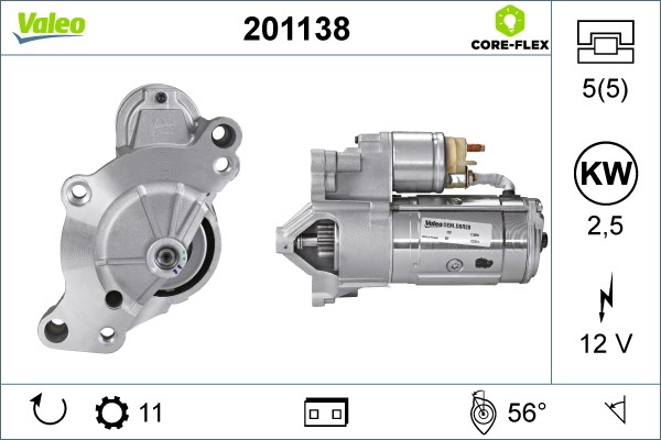 Käynnistin 12V Valeo Valeo core-flex 201138 - citroën, ds, mitsubishi, opel, peugeot - OE 1810A111, 3553141, 5802AV
