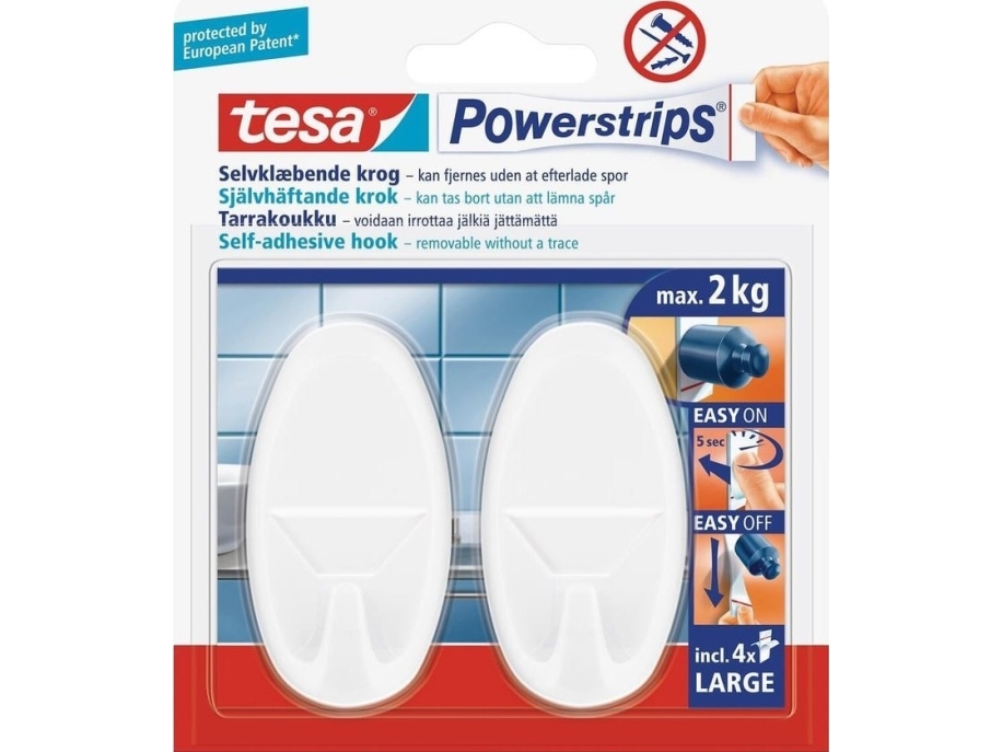 Powerstrips Tesa ovaler Bilderhaken, weiß, Packung mit 2 Streifen