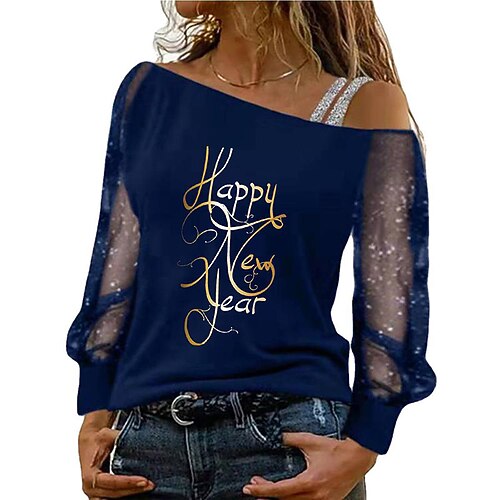 Per donna Camicia Elegant Raso/Satin Blusa Semplice Vintage Elegante Manica Lunga Senza Spalle Top Regolari Quotidiano Ferie Uscire Paillettes Patchwork Rete Blu Nero Vino Viola Verde Estate