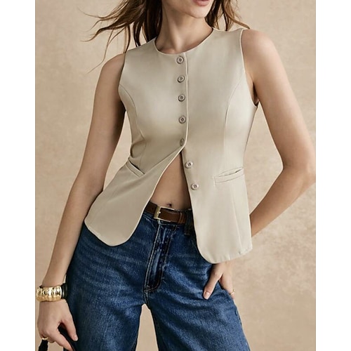 Per donna Blusa Semplice Attivo Elegante Senza Maniche Girocollo Top Regolari Quotidiano Ferie Uscire Tasca Bottoni Nero Bianco Vino Marrone Cachi Estate Primavera
