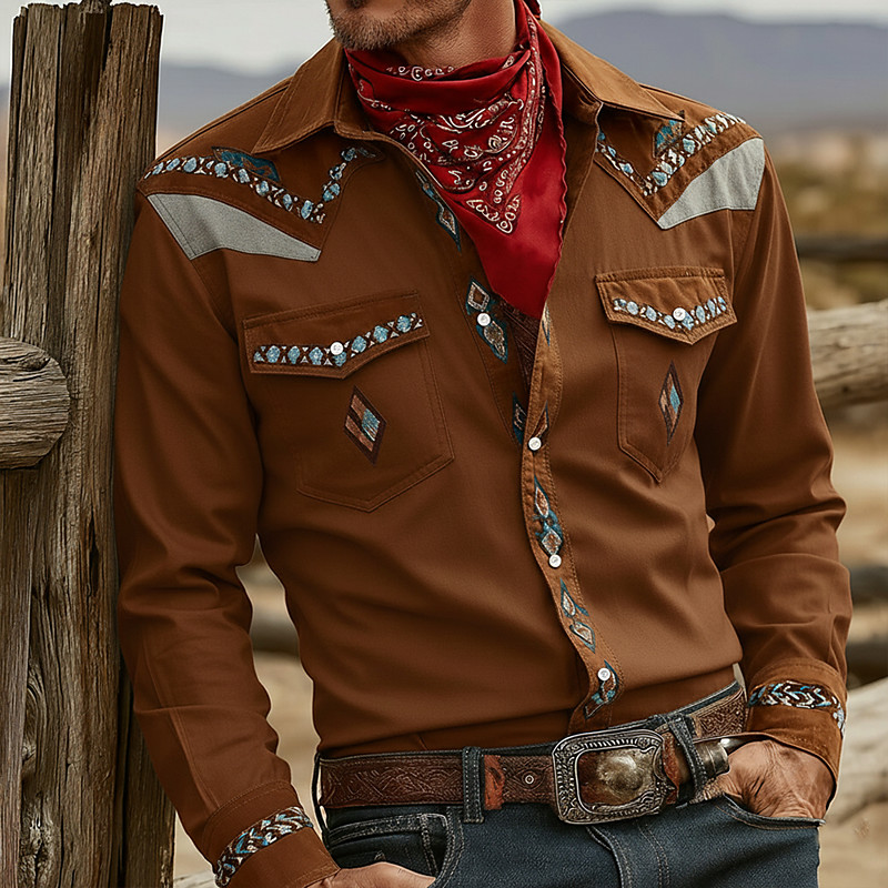 Men's Paisley Floral Print Ethnic Shirt Western Shirt Cowboy Shirt Long Sleeve Vintage Retro Outdoor Daily WorkWear Fall Winter Turndown 3D Print Front Two Pockets Button Up Shirts Blue Brown Khaki