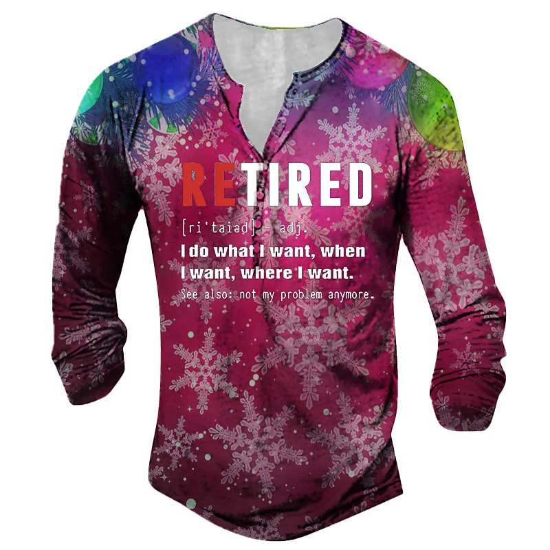 Christmas Retirement Sweater Mens Graphic Shirt Tee Henley Snowflake Yellow Blue Purple Fuchsia Green 3D Print Outdoor Long Sleeve Snowflakes Colorful What Want When Where See Also Not My Problem Anym