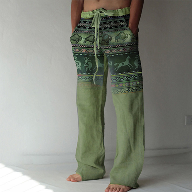 Men's Graphic Prints Linen Pants Baggy Pants Mid Waist Streetwear Hawaiian Designer Casual Daily Holiday Drawstring Elastic Waist Front Pocket Spring Summer 3D Print Green Khaki Gray