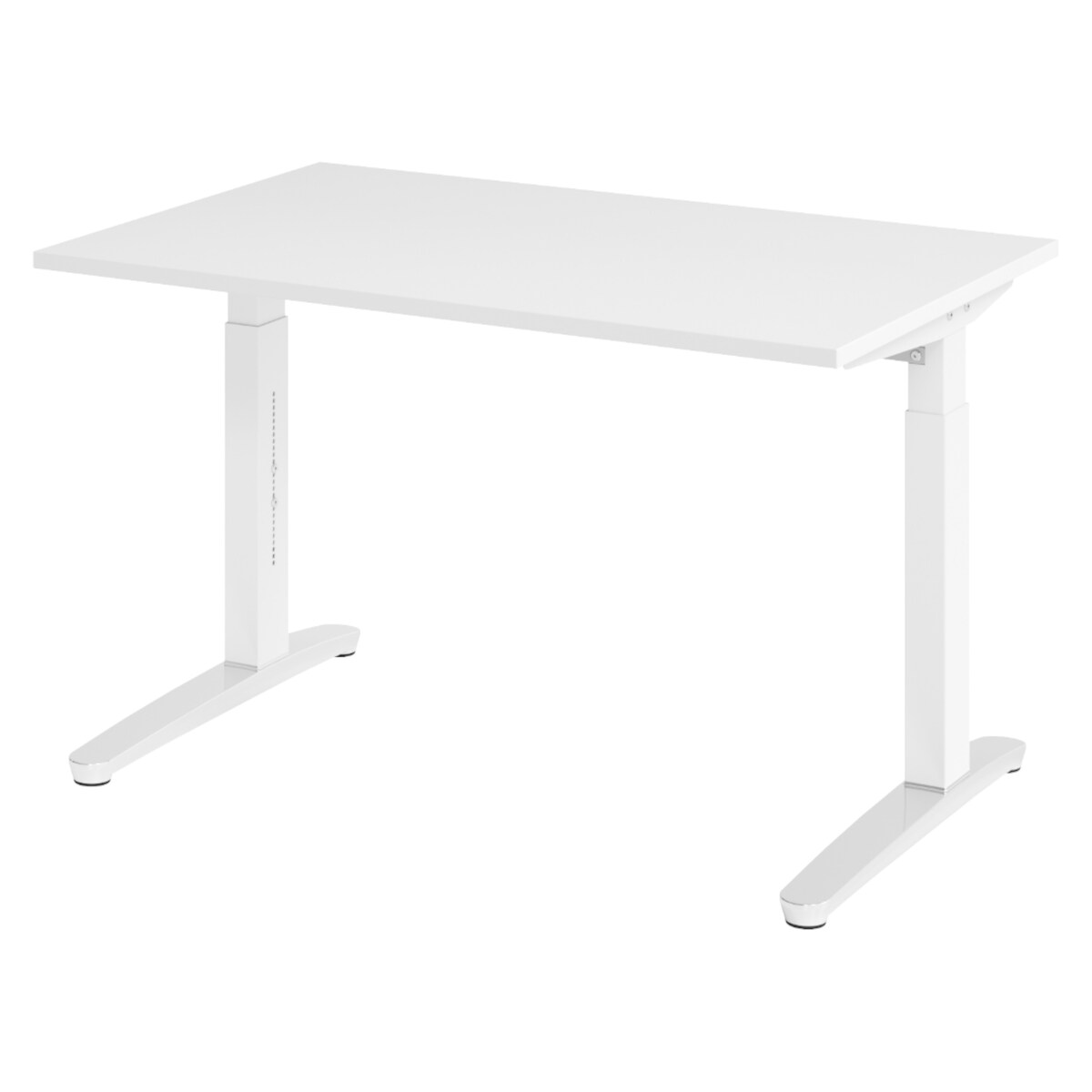 bümö manuell höhenverstellbarer Schreibtisch 120x80 in weiß, Gestell in weiß/alu - PC Tisch höhenverstellbar & klein, höhenverstellbarer Tisch Büro,