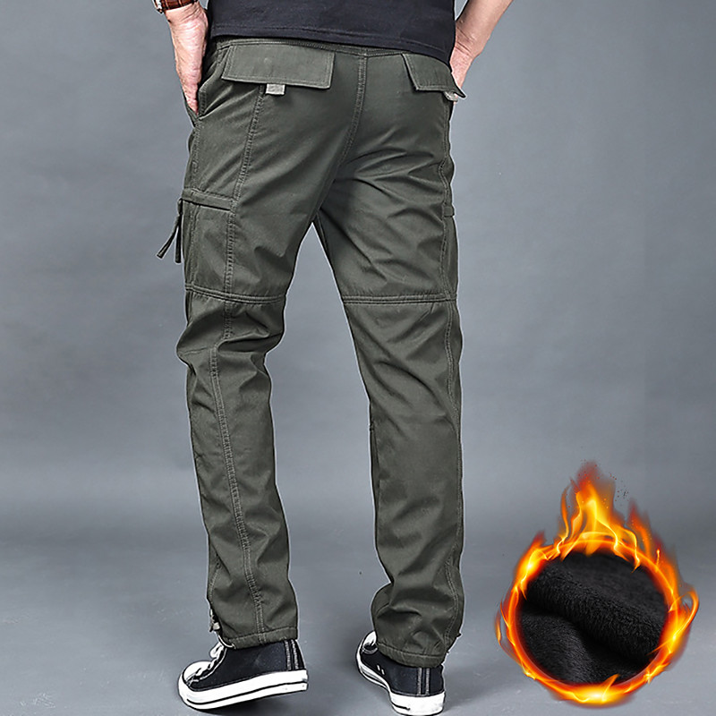 Men's Cargo Pants Cargo Trousers Work Pants Zip Leg Solid Color Thermal Warm Fleece Lining Weekend Streetwear Casual Formal ArmyGreen Black