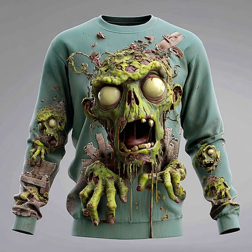 Herren Coole Schädel Pullover Strickpullover Strickkleidung Rundhals Lässig Urlaub Täglich Festival 3D Druck Warmhalten Lange Ärmel Frühling Herbst Winter Dunkelgrün Lila Grün