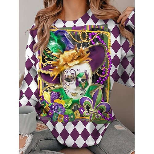 Karneval Damen Pullover Sweatshirt Grafik Lässig Lange Ärmel Rundhalsausschnitt Regelmäßige Oberteile Lässige Straße Tägliche Wear Weiß Gelb Lila Herbst Winter