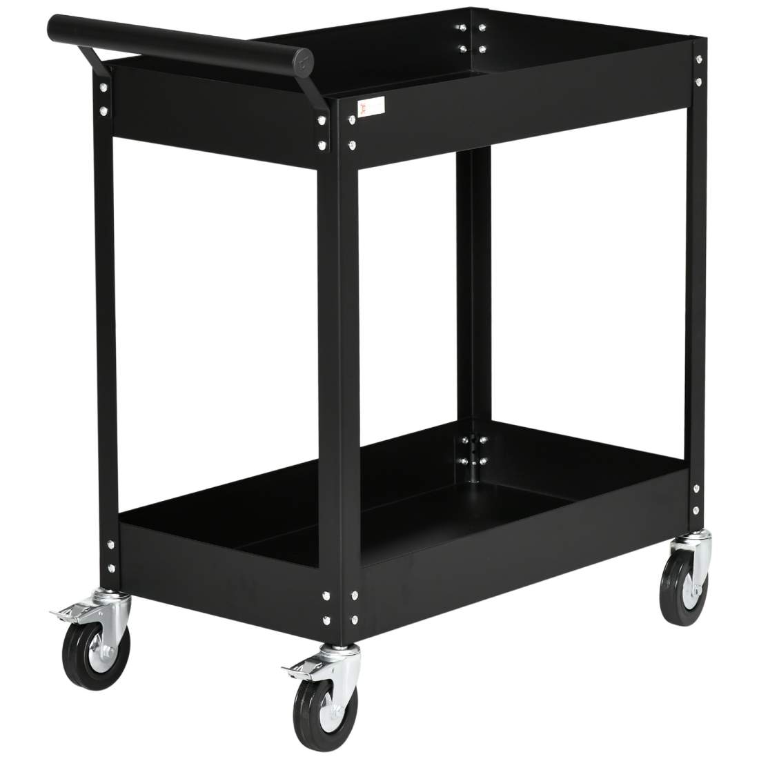 Værkstedsvogn med 2 niveauer, tom værktøjsvogn, transportvogn, sidehåndtag, 4 hjul, stål, op til 150 kg bæreevne, 84,5 x 38 x 84