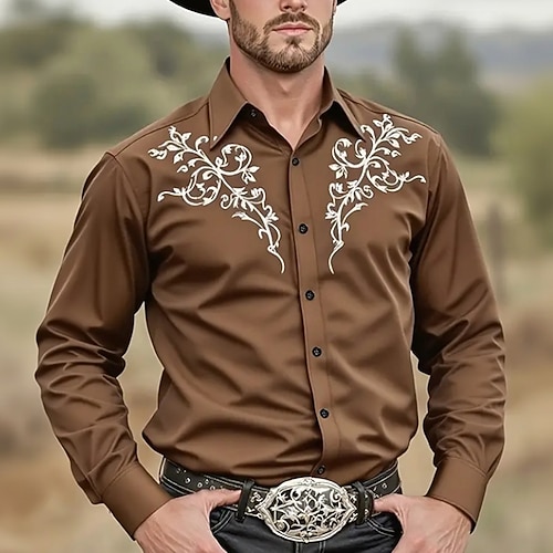 Per uomo Rotellina Stampa Floreale Etnico Camicia Camicia Western Camicia da cowboy Manica Lunga Vintage Retrò All'aperto Vacanza Primavera Autunno Collo ripiegato Stampa 3D Camicia tipo lino Cáqui