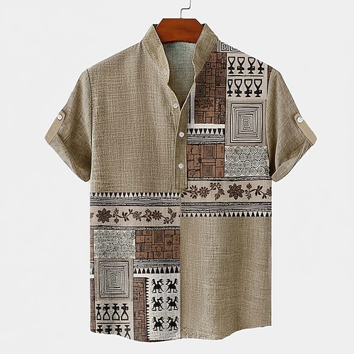 Per uomo Stampa Floreale Etnico Chiave greca Camicia Camicia button-down Manica Corta Vintage Retrò Ferie Casual Quotidiano Estate Primavera Colletto Mao Colletto Henley Stampa 3D Camicia tipo lino