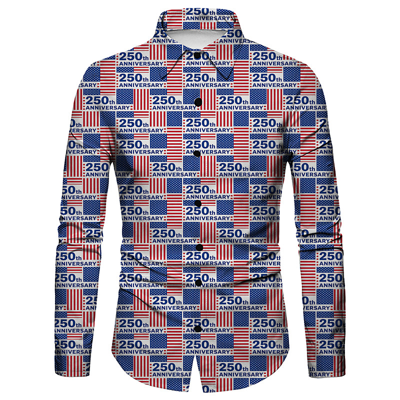 American 250 Retro Vintage 1970s Shirt Aloha Shirt Long Sleeves Hippie Geometic Ethnic Fancy Dress Men's Masquerade 4th of July Party Independence Day Semiquincentennial Adults' Shirt