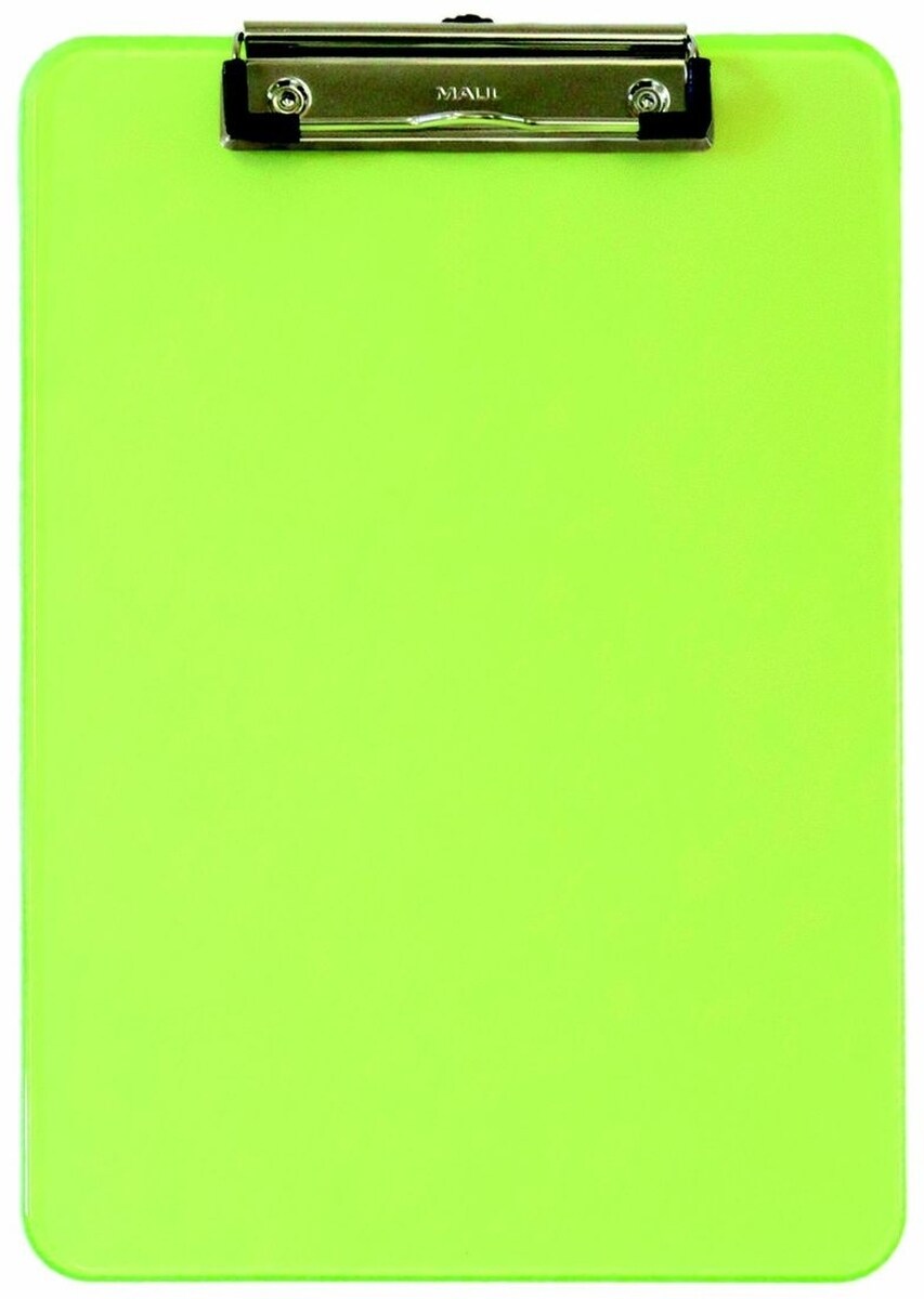 MAUL Schreibplatte A4 Kunststoff mit Bügelklemme transparentgrün Packung mit 12 Stück