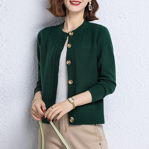 Per donna Felpa Cardigan Elegante Streetwear Casual Tinta unica Girocollo Bottoni Lavorato a maglia Manica Lunga Top Regolari Maglia Quotidiano Ferie Uscire Rosso Viola Autunno Inverno