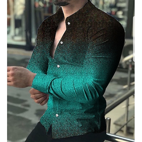 Per uomo Gradiente Geometrica Camicia Camicia con bottoni Manica lunga Di tendenza Originale Informale Giornaliero Per eventi Per uscire Primavera estate Collo ripiegabile Stampa 3D Bottone giù