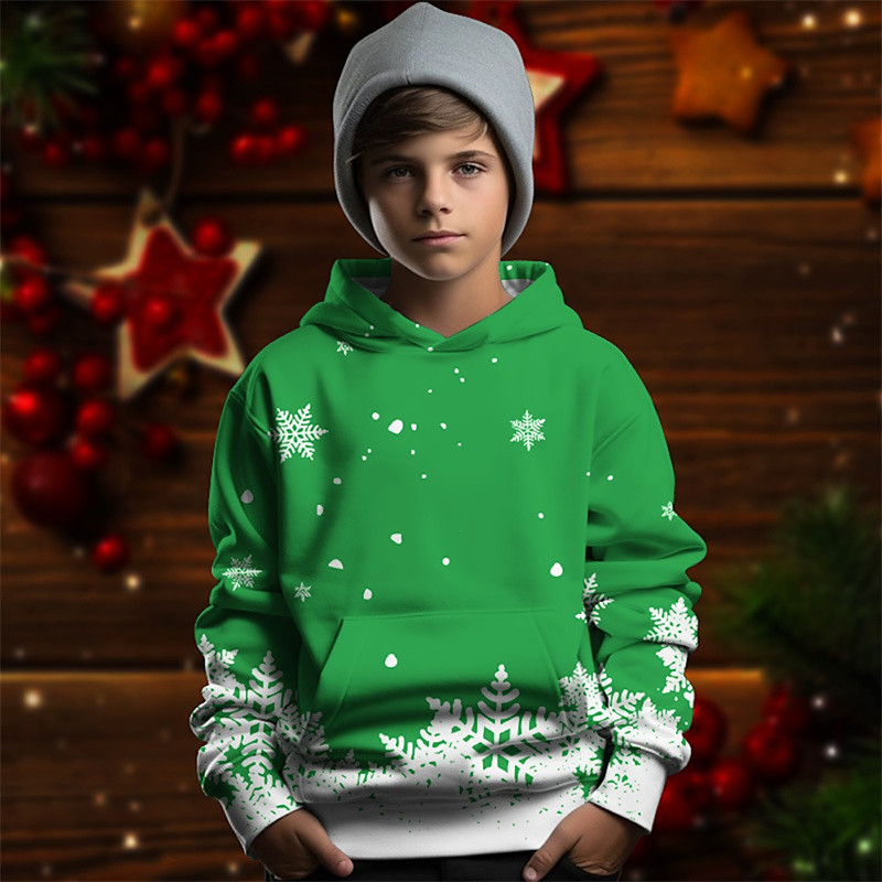 Boys 3D Graphic Snowflake Hoodie Long Sleeve Spring Fall Fashion Streetwear Kids 4-12 Years Hooded Outdoor Casual Daily Regular Fit