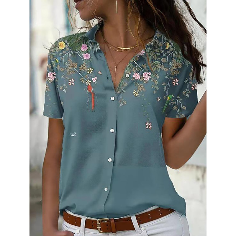Women's Shirt Blouse Floral Stylish Casual Short Sleeve Shirt Collar Regular Tops Daily Buttons Print Light Green Pink Blue Summer Spring