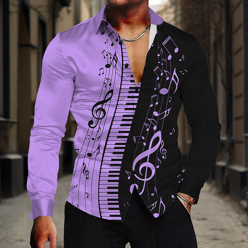 Men's Shirt Dress Shirt Geometric Pattern Outdoor Casual Red Blue Purple Green Long Sleeve Turndown Summer Spring Clothing Apparel Print