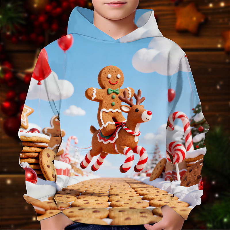 Christmas Boys' 3D Graphic Gingerbread Hoodie Long Sleeve Spring Fall Fashion Streetwear Kids 4-12 Years Hooded Outdoor Casual Daily Regular Fit