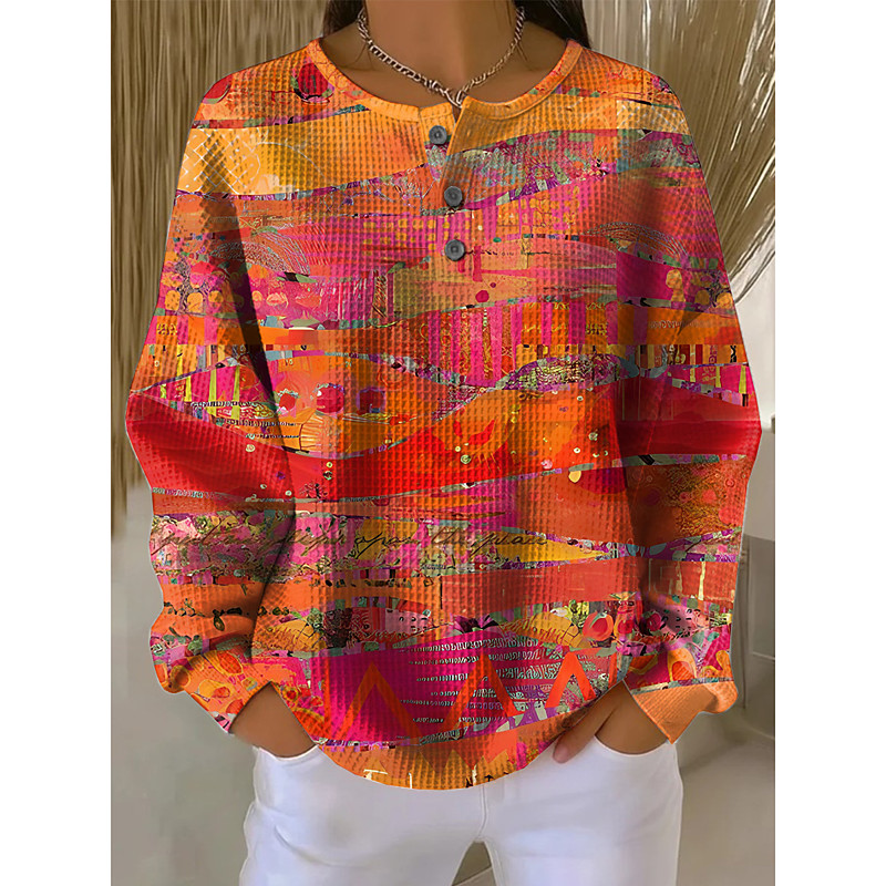 Women's Shirt Basic Buttons Print Long Sleeve Regular Tops Casual Pink Blue Green Spring Fall