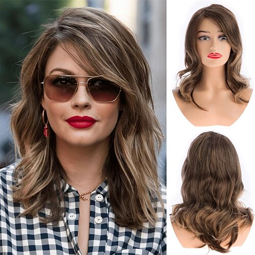 Parrucca bionda corta ombre con frangia Parrucca bob riccia ondulata lunga fino alle spalle per le donne Parrucca bob bionda riccia sintetica dall'aspetto naturale per la festa e l'uso quotidiano