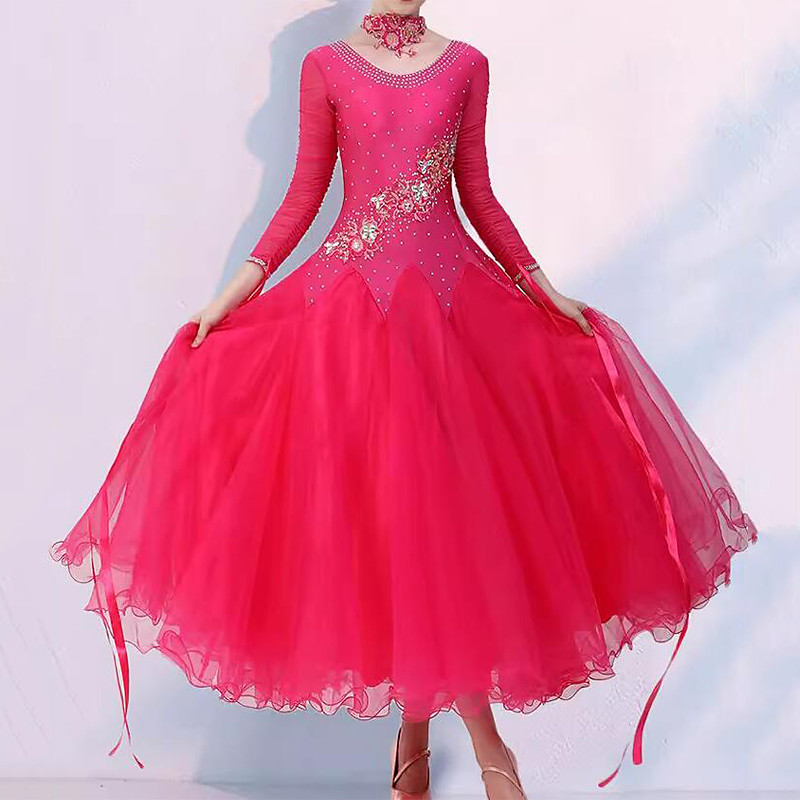 Ballroom Dance Dress Splicing Women's Performance Party Long Sleeve Spandex