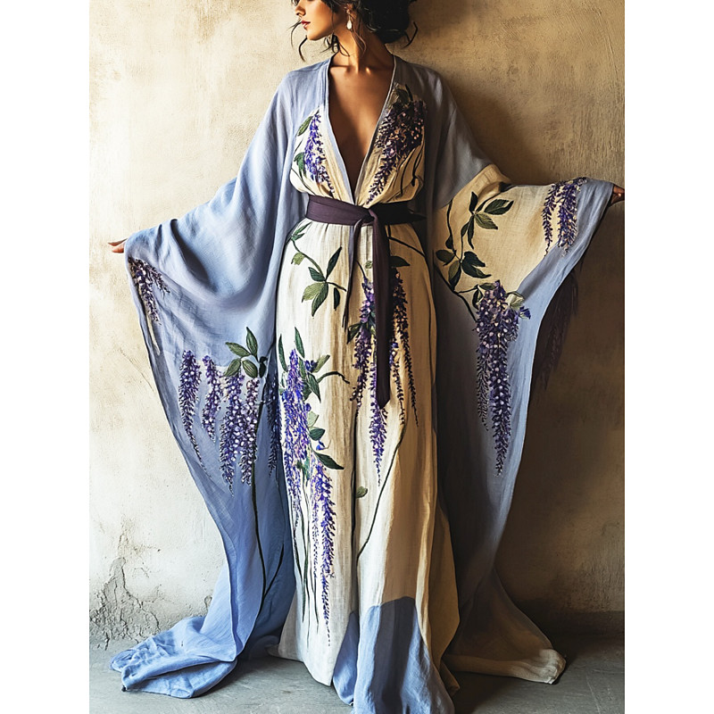 Women's Long Dress Maxi Dress Boho Dress Casual Dress Swing Dress Summer Dress Vintage Vacation Daily Beach Regular Fit Floral Long Sleeve V Neck Blue Summer Spring Fall