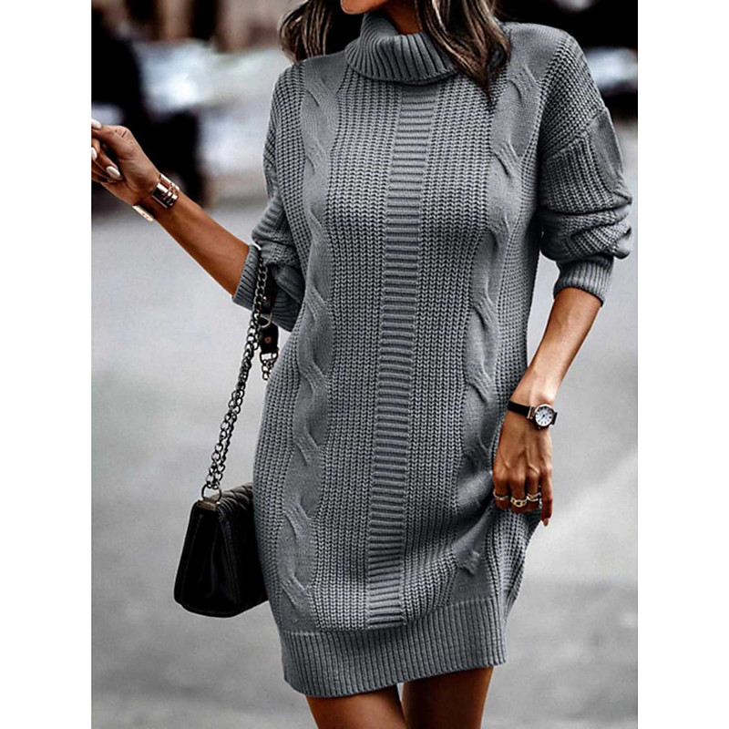 Women's Sweater Sweater Dress Casual Soft Pure Color Ribbed Turtleneck Knitted Long Sleeve Long Tops Knit Outdoor Daily Weekend Black Pink Fall Winter