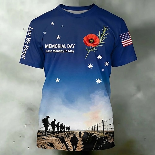Gedenktag „Letzter Montag im Mai" – Patriotisches Herren-T-Shirt mit Soldatensilhouette, Allover-Print, Rundhalsausschnitt, Kurzarm, „Damit wir nicht vergessen", Geschenk zur Ehrung von Veteranen,