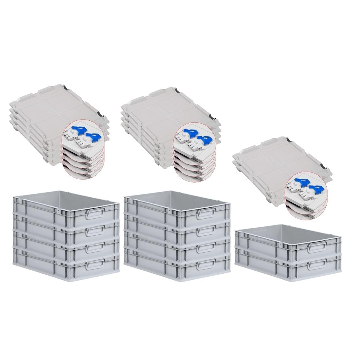 PROREGAL SuperSparSet 10x Eurobox NextGen Economy mit Scharnierdeckel & blauen Verschlüssen, Griffe zu, HxBxT 12x40x60cm, 23L, Eurobehälter, Box