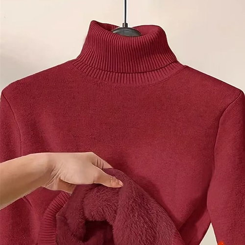 Per donna Felpa Maglione Elegante Moda Quotidiano Dolcevita Lavorato a maglia Manica Lunga Top Regolari Maglia Quotidiano Rosa Rosso Primavera Autunno