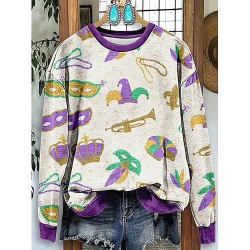 Martedì grasso Per donna Maglietta Grafico Lettera Vintage Bohemien Vintage Moda Manica Corta Manica Lunga Girocollo Top Regolari Quotidiano Weekend Stampato Nero Verde scuro Viola Verde Beige Estate