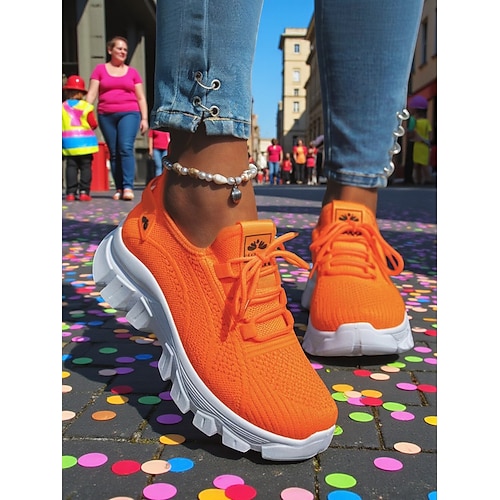 scarpe da ginnastica da corsa arancioni da donna, tessuto a rete traspirante, scarpe sportive comode e leggere per carnevale, festival e attività all'aperto