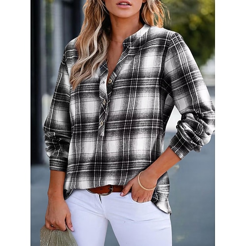 Per donna Blusa Grafico Plaid Elegante Vintage Essenziale Manica Lunga Colletto a Camicia Top Regolari Quotidiano Lavoro Blu Nero Bianco Giallo Rosso Estate Primavera Autunno Inverno