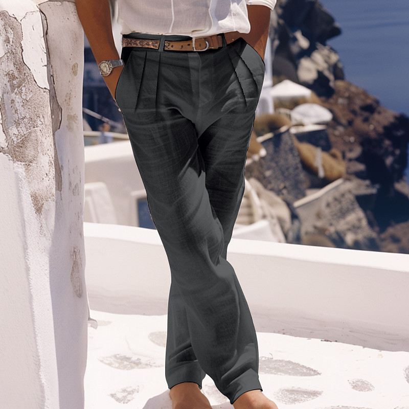 Men's Linen Pants Trousers Summer Pants Beach Pants Buttons Pocket Pleats Plain Comfort Breathable Daily Holiday Vacation Hawaiian Boho White Khaki