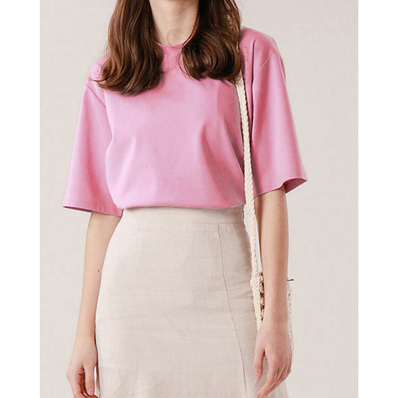 Women's Clothing Basic Oversized Round Neck T-shirts Plain New Color Loose Shoulder Sleeve Round Neck Short Sleeve Top