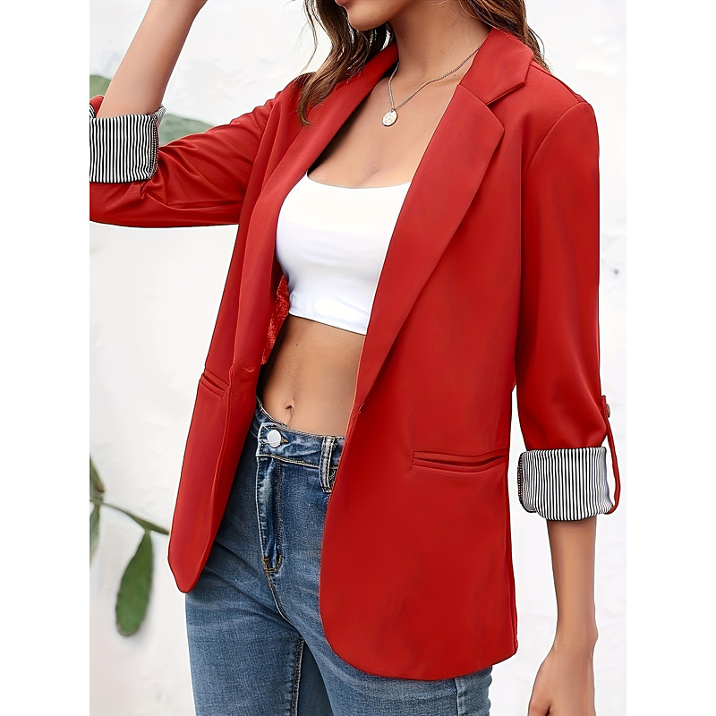Women's Blazer Comfortable Breathable Buttons Fashion Modern Plain Work Daily Regular Turndown Regular Fit Long Sleeve Outerwear Black Red Burgundy Spring Fall