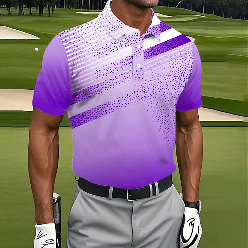 Men's Geometric Golf Sports Polo Shirts Short Sleeve Polo Shirts Lapel Casual Athleisure 3D Print Buttons Summer Blue Red Purple