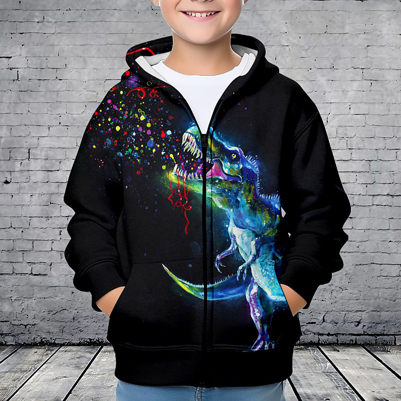 Boys 3D Dinosaur Hoodie Coat Outerwear Long Sleeve 3D Print Fall Winter Fashion Streetwear Cool Kids 3-12 Years Outdoor Casual Daily Regular Fit
