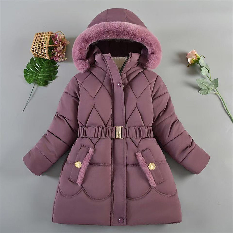 Kids Girls' Down Jacket Puffer Jacket Solid Color Sports Pocket Keep Warm Windproof Outdoor Coat Outerwear 4-12 Years Winter Black Purple Khaki