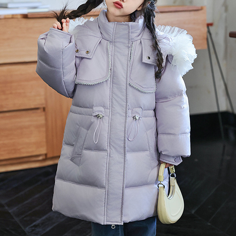 Kids Girls' Down Jacket Puffer Jacket Solid Color Sports Pocket Keep Warm Windproof Outdoor Coat Outerwear 4-12 Years Winter White Pink Purple