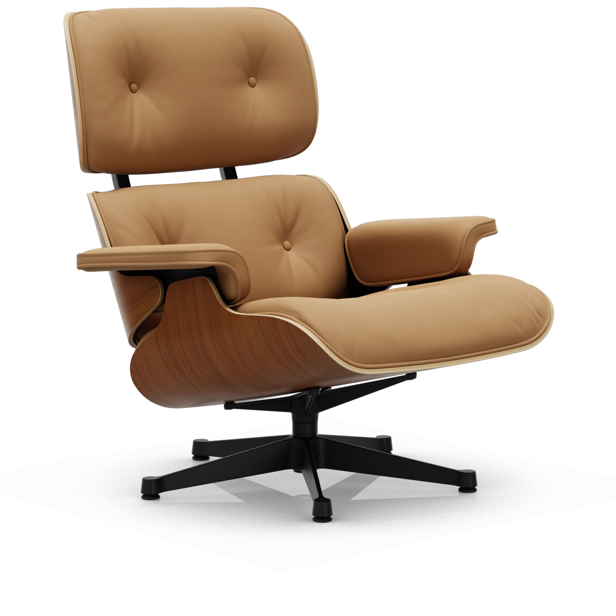 Vitra - Eames Lounge Chair Natural Walnut Leather Premium Ochre 62 Deep Black - Fåtöljer - Charles & Ray Eames - Läder/Metall/Trä